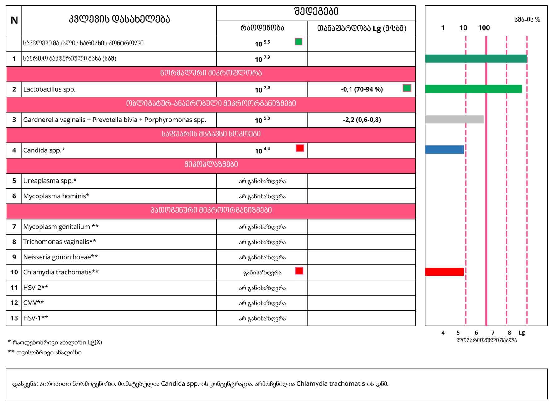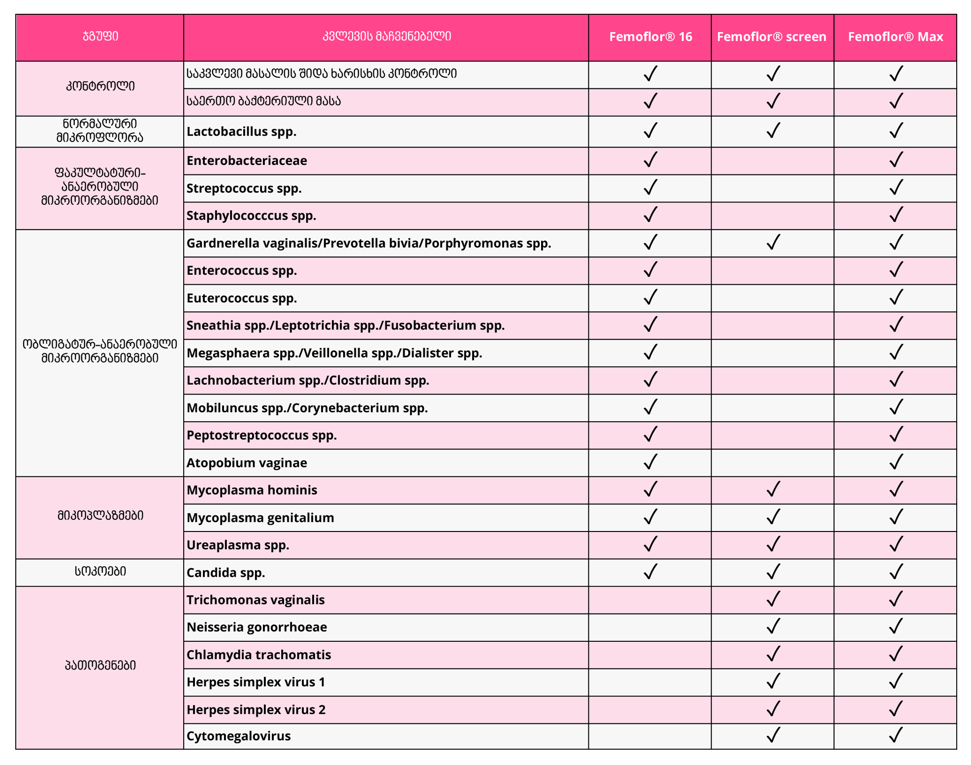 უროგენიტალური ინფექციების კვლევაში ნამდვილ აღმოჩენად იქცა ტესტი Femoflor, რომელიც საშუალებას იძლევა ერთი ტესტის ფარგლებში, ბიოლოგიური მასალის ერთი ნიმუშით გამოვიკვლიოთ საშოს ბიოცენოზი და კლინიკურად მნიშვნელოვანი ინფექციების სრული სპექტრი: ლაქტობაქტერიები, პირობით-პათოგენური მიკროორგანიზმები, მიკოპლაზმები, კანდიდას ტიპის სოკოები და სქესობრივი გზით გადამდები ინფექციები. ტესტი Femoflor დაფუძნებულია Real Time PCR (პჯრ რეალურ დროში) მეთოდზე, რომელიც ყველაზე ზუსტი და სწრაფი მეთოდია გენიტალური ინფექციების კვლევისთვის.